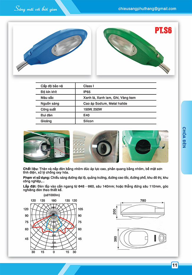 Chóa đèn PT.S6 cũng giống như các loại chóa đèn khác, chóa được sản xuất theo công nghệ cao, quy trình công nghệ tiên tiến mang đến chất lượng tốt nhất cho người sử dụng.